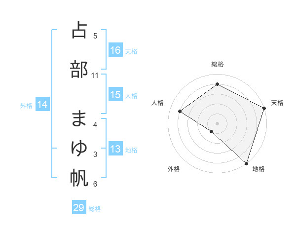 占部 まゆ帆さんを姓名の画数から五運を鑑定
