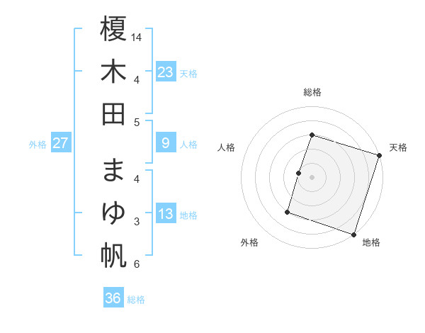 榎木田 まゆ帆さんを姓名の画数から五運を鑑定
