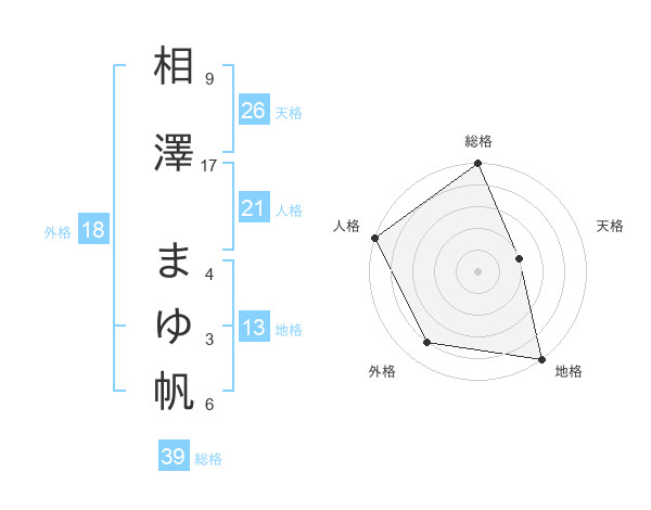 相澤 まゆ帆さんの総格は39画の5点!
