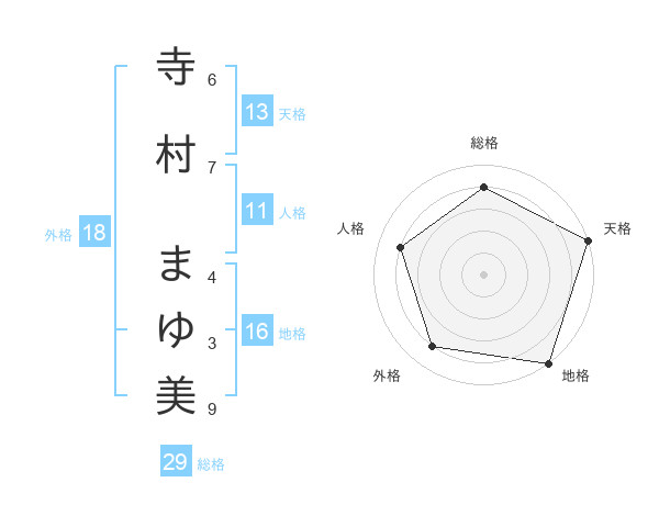 寺村 まゆ美さんの天格は13画の5点!