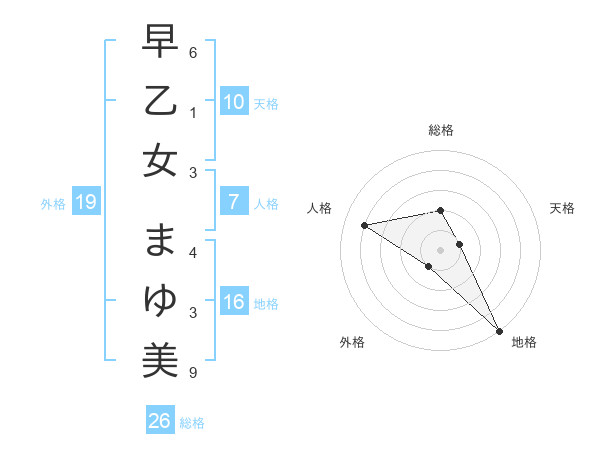 早乙女 まゆ美さんを姓名の画数から五運を鑑定