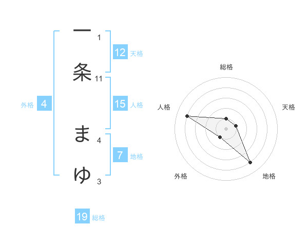 一条 まゆさんの総格は19画の1点!