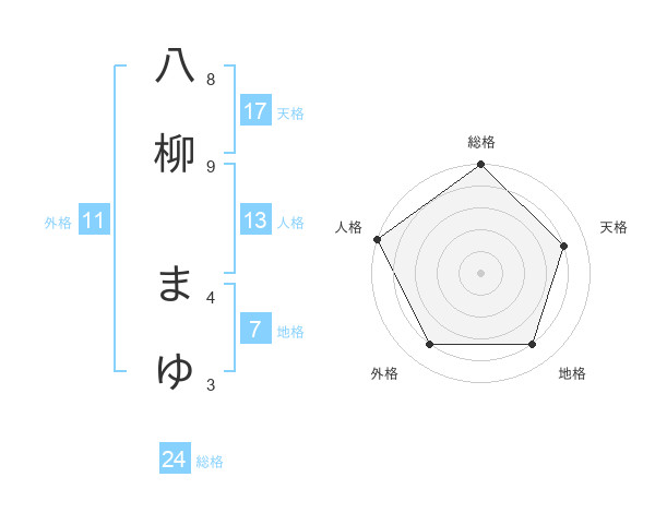 八柳 まゆさんの総格は24画の5点!