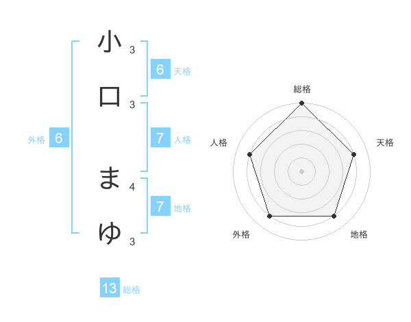 小口 まゆさんの総格は13画の5点!