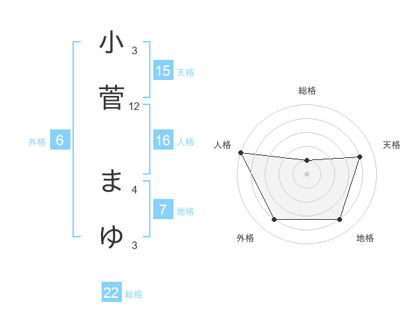 小菅 まゆさんの天格は15画の4点!