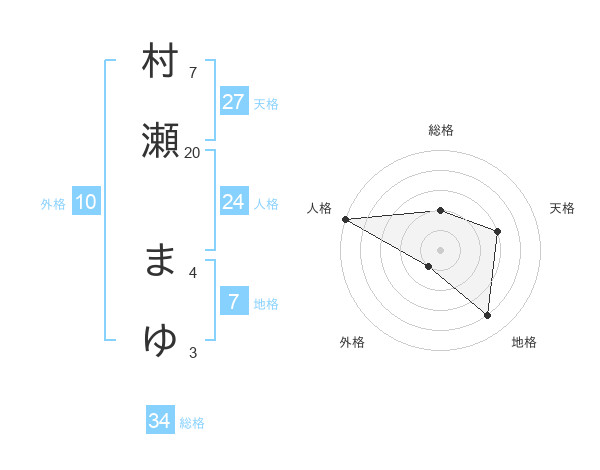 村瀬 まゆさんの総格は34画の2点!