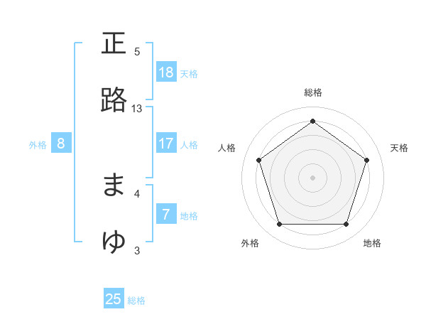 正路 まゆさんの総格は25画の4点!