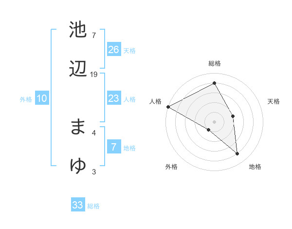 池辺 まゆさんを姓名の画数から五運を鑑定