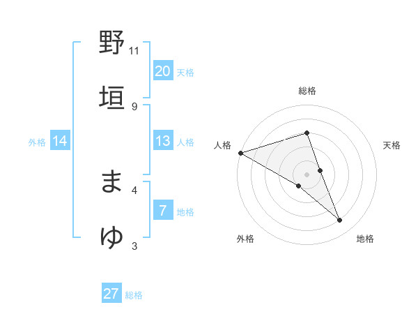 野垣 まゆさんを姓名の画数から五運を鑑定