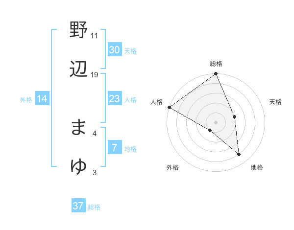 野辺 まゆさんを姓名の画数から五運を鑑定
