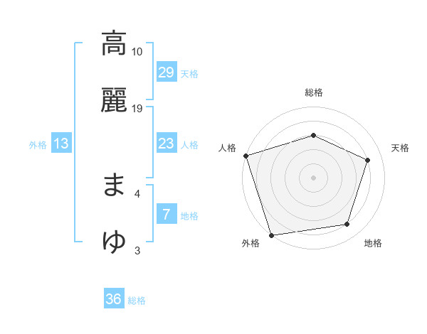 高麗 まゆさんの外格は13画の5点!