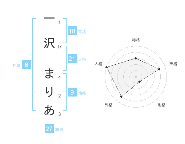一沢 まりあさんを姓名の画数から五運を鑑定