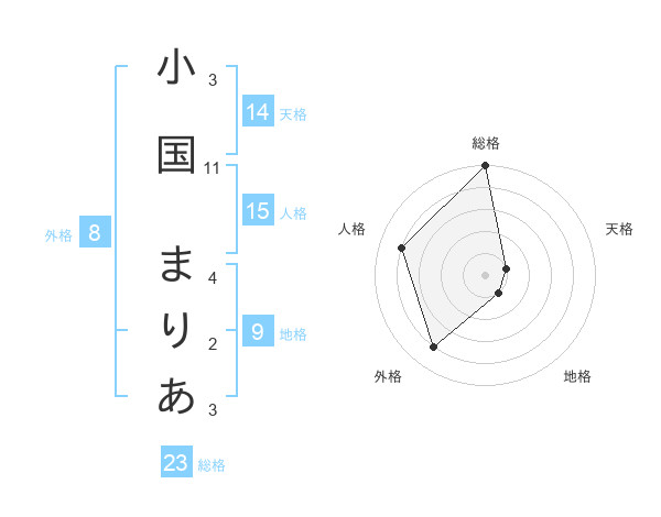 小国 まりあさんの総格は23画の5点!