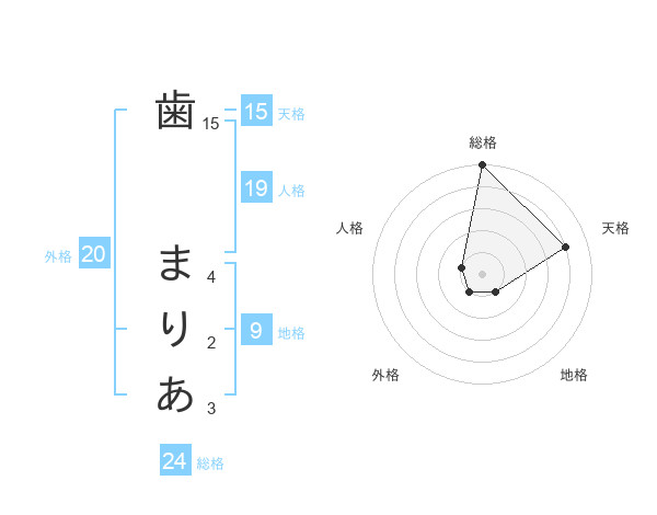 歯 まりあさんの総格は24画の5点!