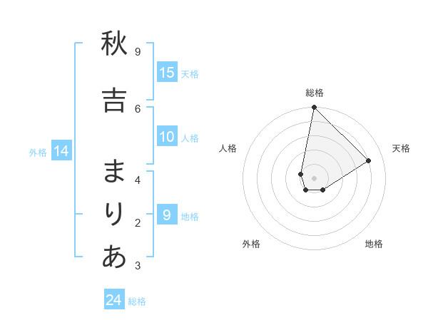 秋吉 まりあさんの総格は24画の5点!