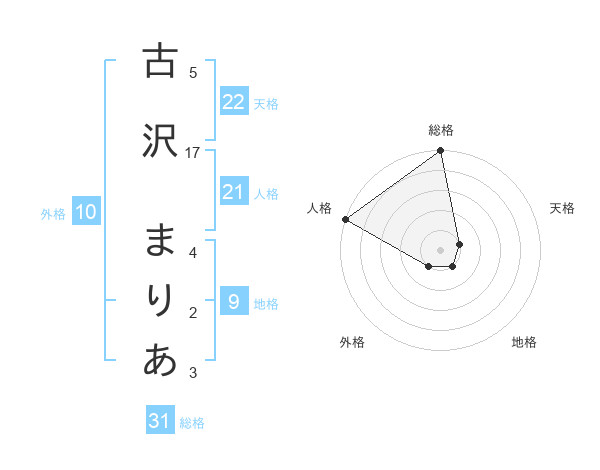 古沢 まりあさんを姓名の画数から五運を鑑定