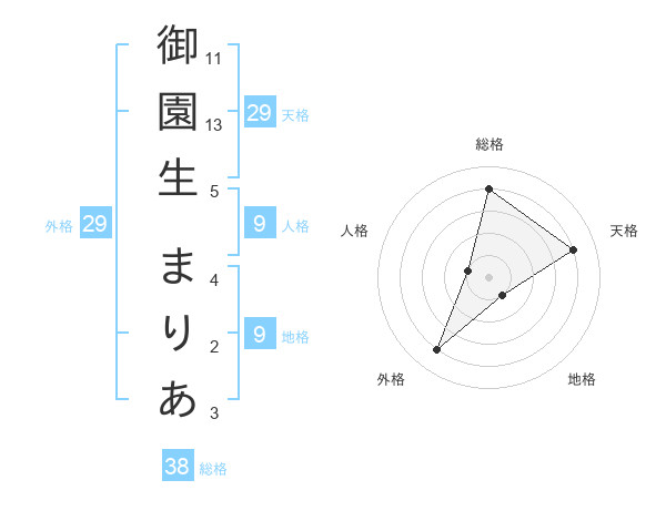 御園生 まりあさんの総格は38画の4点!