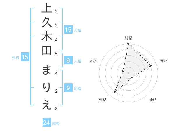 上久木田 まりえさんを姓名の画数から五運を鑑定