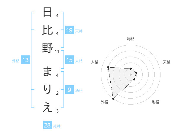 日比野 まりえさんを姓名の画数から五運を鑑定