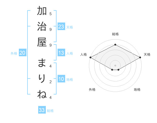 加治屋 まりねさんを姓名の画数から五運を鑑定