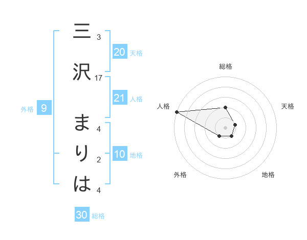 三沢 まりはさんを姓名の画数から五運を鑑定