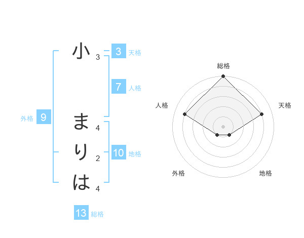 小 まりはさんの総格は13画の5点!