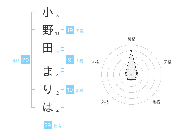 小野田 まりはさんを姓名の画数から五運を鑑定