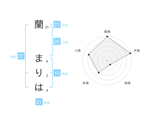 蘭 まりはさんの天格は21画の5点!