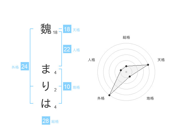 魏 まりはさんの天格は18画の4点!