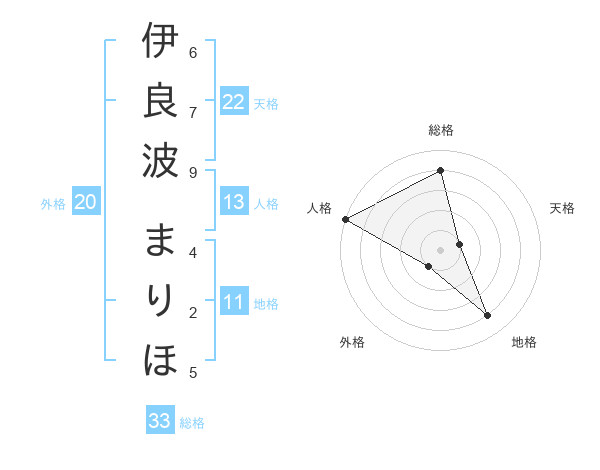 伊良波 まりほさんの地格は11画の4点!