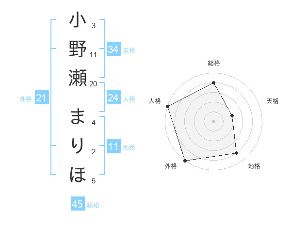 小野瀬 まりほさんの総格は45画の4点