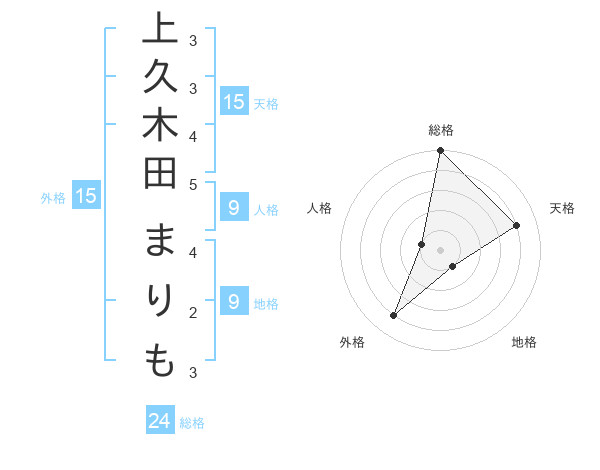 上久木田 まりもさんの天格は15画の4点