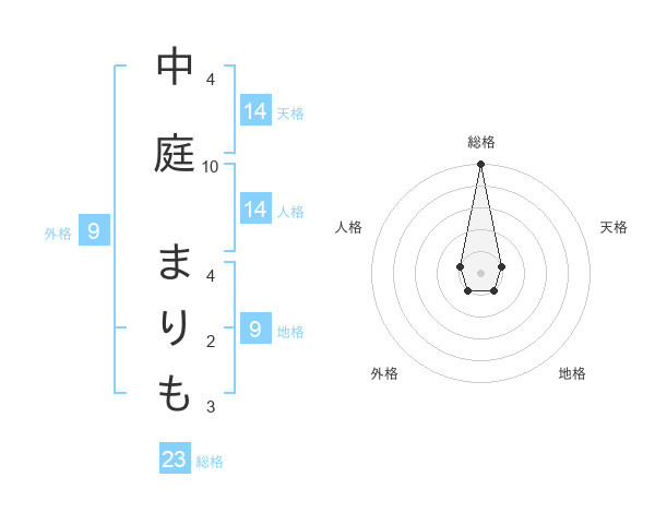 中庭 まりもさんの総格は23画の5点!