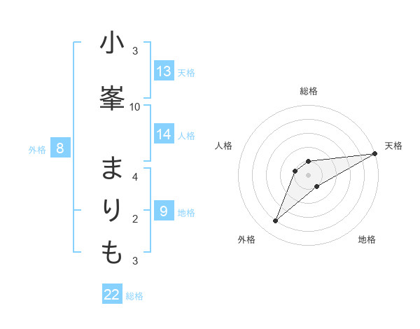 小峯 まりもさんの天格は13画の5点!