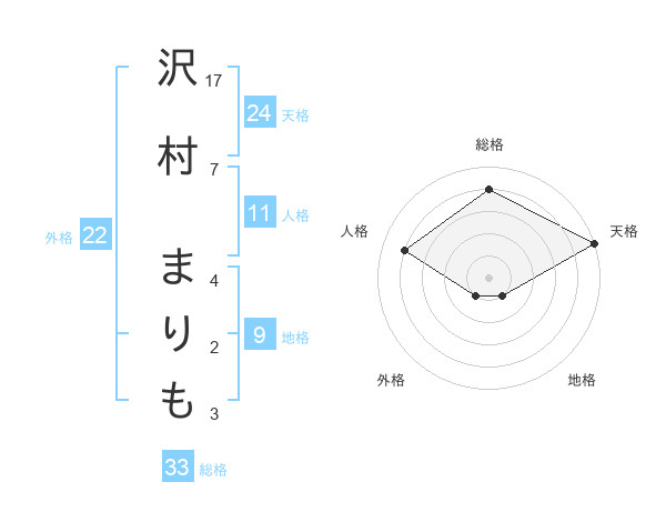 沢村 まりもさんを姓名の画数から五運を鑑定