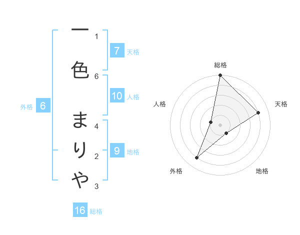占い結果は姓名判断である以上、良い場合も悪い場合もありますが、決してお名前を誹謗中傷するものでなく、画数の自動計算によって得られたものです。また、本サイトの検索によって得られた鑑定結果で、第三者を誹謗中傷したり名誉を棄損するような行為を禁じます。