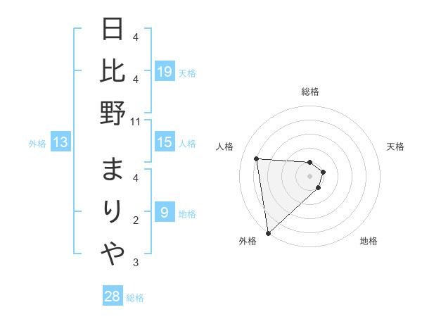 日比野 まりやさんの外格は13画の5点!