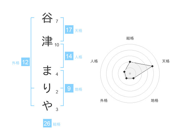 谷津 まりやさんを姓名の画数から五運を鑑定