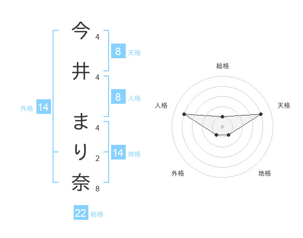 今井 まり奈さんを姓名の画数から五運を鑑定