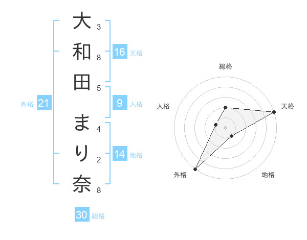 大和田 まり奈さんの天格は16画の5点!