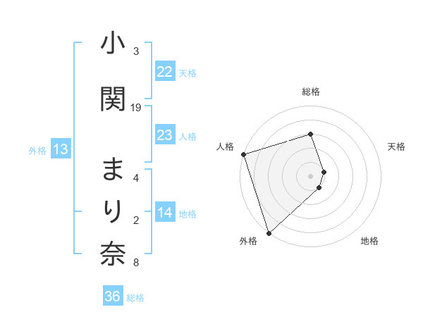 小関 まり奈さんを姓名の画数から五運を鑑定