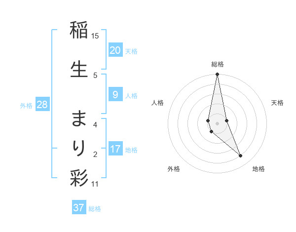 稲生 まり彩さんを姓名の画数から五運を鑑定