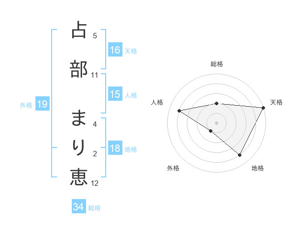 占部 まり恵さんを姓名の画数から五運を鑑定