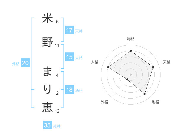 米野 まり恵さんを姓名の画数から五運を鑑定