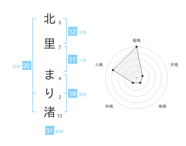 北里 まり渚さんの総格は31画の5点!
