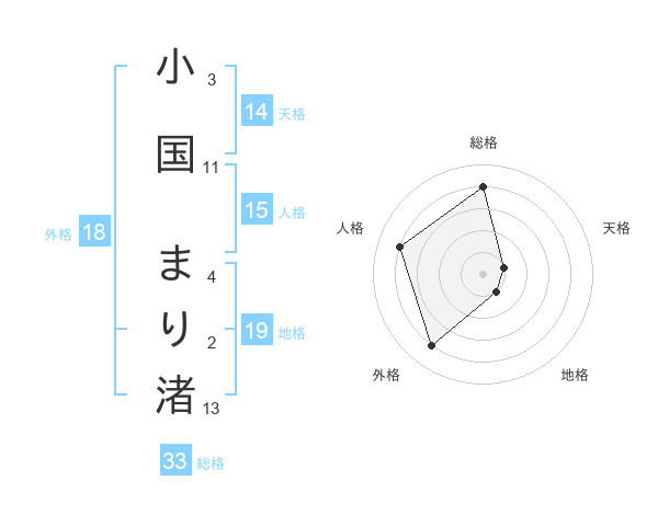 小国 まり渚さんを姓名の画数から五運を鑑定