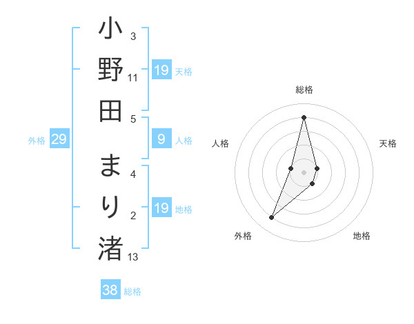 小野田 まり渚さんを姓名の画数から五運を鑑定