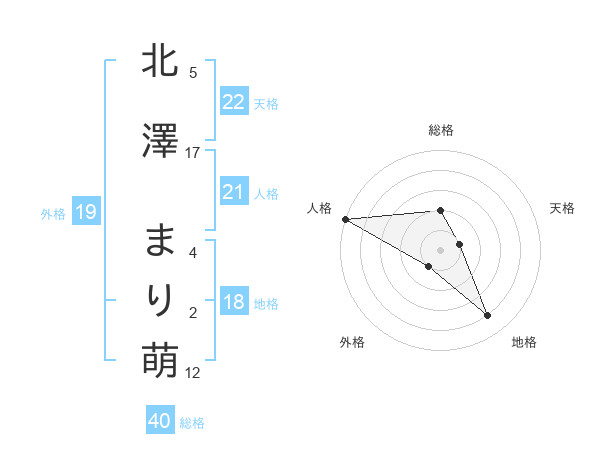 北澤 まり萌さんを姓名の画数から五運を鑑定