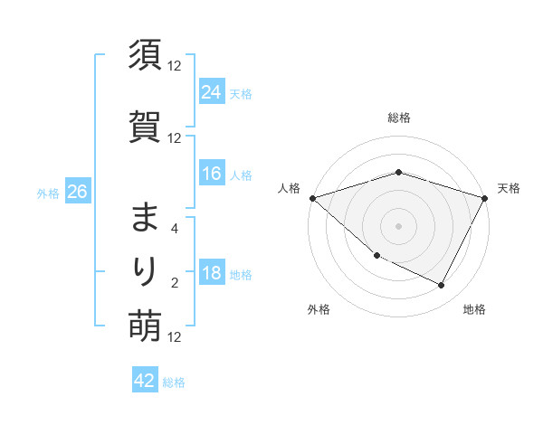 須賀 まり萌さんを姓名の画数から五運を鑑定