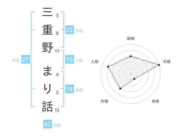 三重野 まり話さんを姓名の画数から五運を鑑定